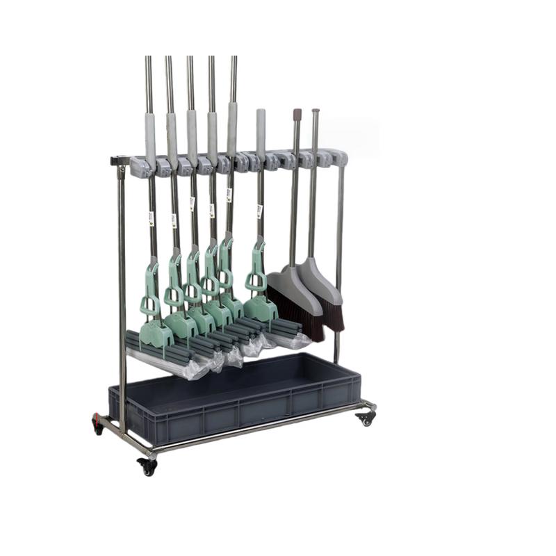 ELAYUR Mobile Floor Mop and Broom Holder with Draining Rack