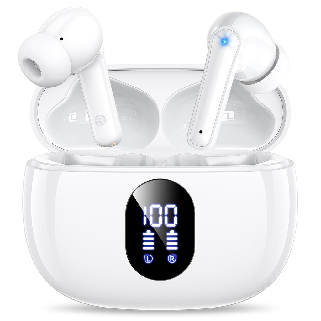 [48-Hour Music Playback & LED Display] The T18 wireless earbuds offer up to 9 hours of playback time on their own when fully charged, and up to 48 hours of playback when used with the charging case, which features an LED display. They also feature a clear LED battery level indicator, which shows the remaining charge in the charging case from 100% to 1%. The LED display also clearly indicates when the charging case is charging. This allows you to see the charging status at a glance, plan your use efficiently, and never worry about running out of battery throughout the day.