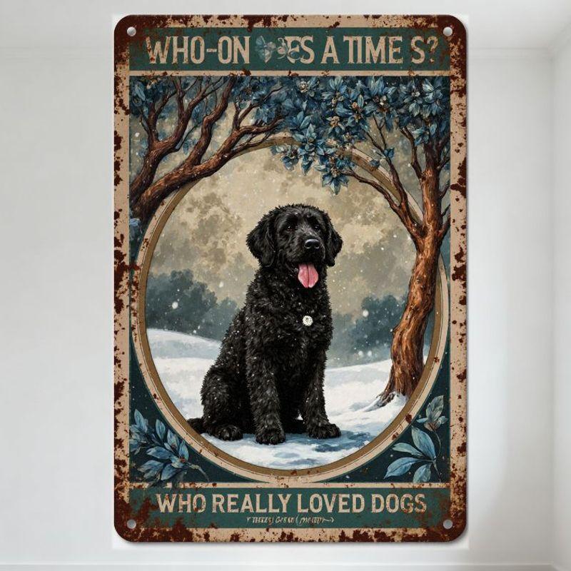 Vintage Rusty Metal Dog Sign with Snowy Winter Scene - 'WHO REALLY LOVED DOGS' Whimsical Wall Decor for Home Cafe Bar