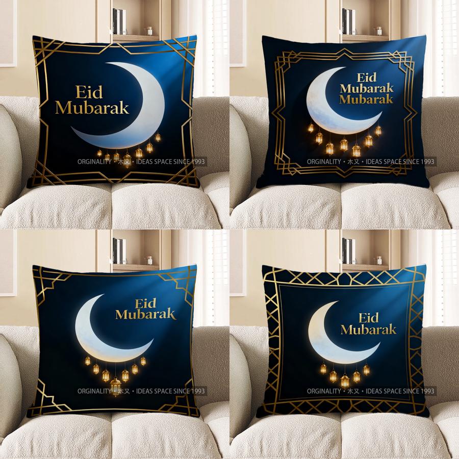 2D Eid Mubarak Crescent Lanterns Decorative Pillow Pattern Cushion Cover Suitable For Sofa Bedroom Car Pillow Cover