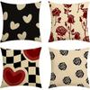 2D Heart & Rose Patterned Digital Print Pillow Covers Pattern Cushion Cover Suitable For Sofa Bedroom Car Pillow Cover