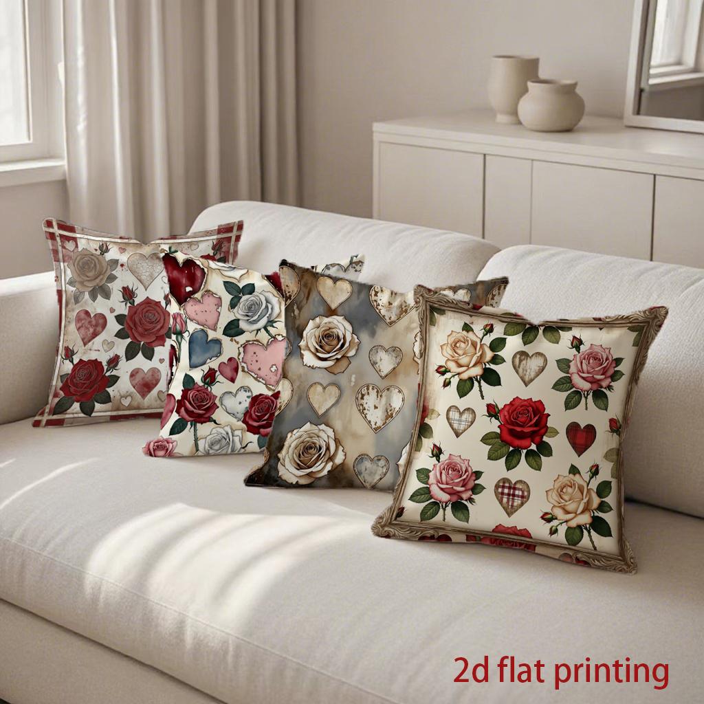 2D Rose & Heart Patterned Decorative Pillow Covers Pattern Cushion Cover Suitable For Sofa Bedroom Car Pillow Cover