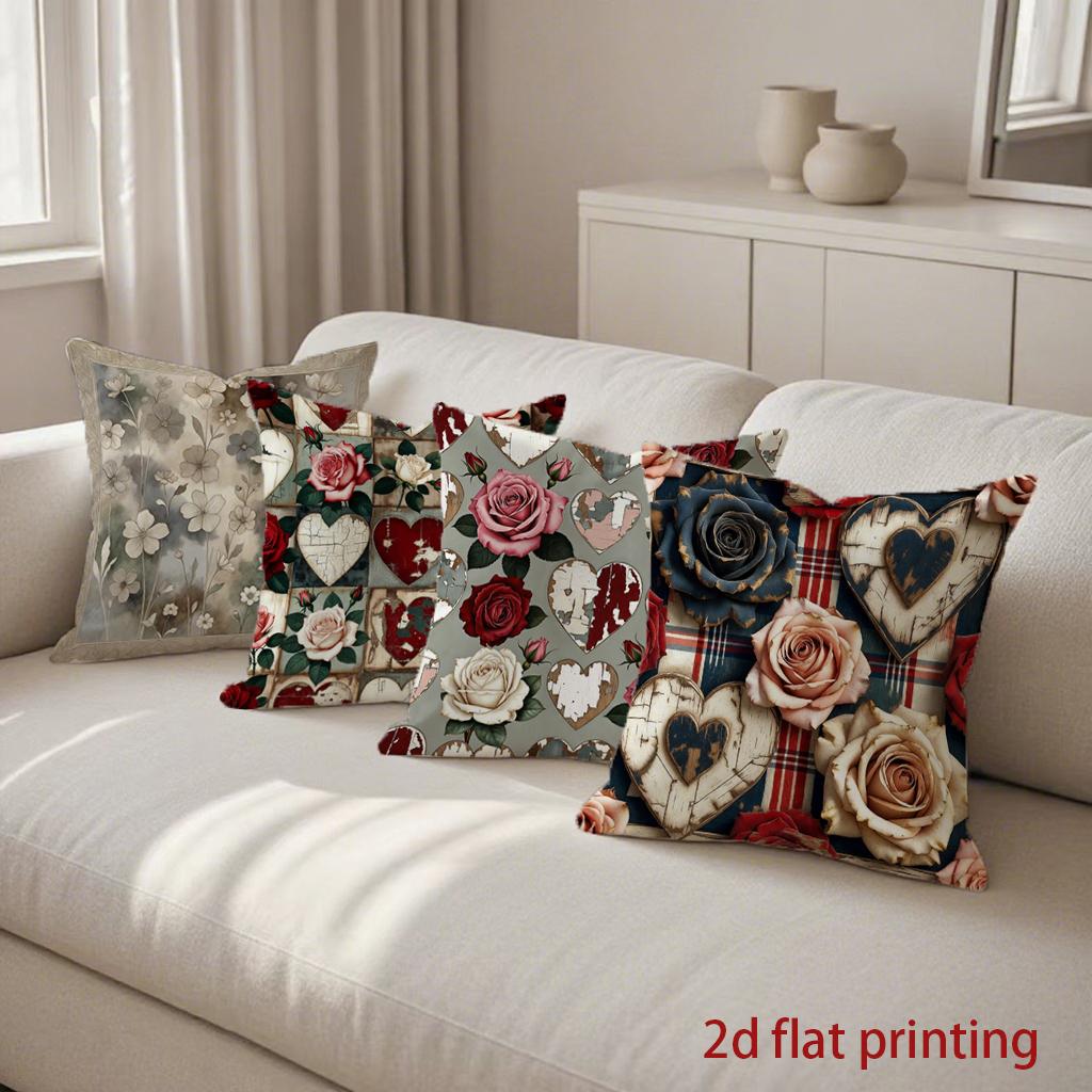 2D Floral & Heart Pattern Digital Print Pillowcase Pattern Cushion Cover Suitable For Sofa Bedroom Car Pillow Cover