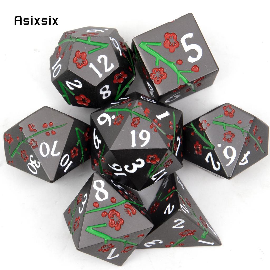 7 Pcs Black Flower Metal Dice Solid Metal Polyhedral Dice Set Suitable for Role-Playing RPG Board Game Card Game