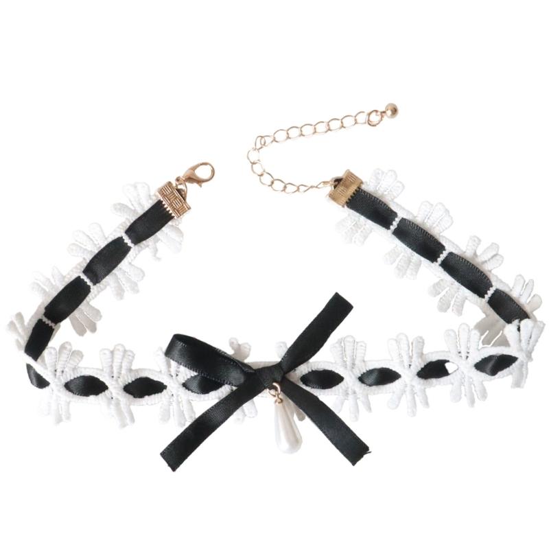 Elegant Lace Collar Necklace Maid Neck Collar Bowknot Lace Choker Necklace Chain Choker Suitable for Cosplay and Parties