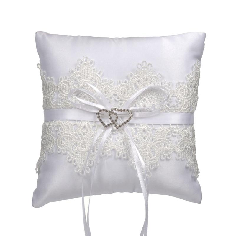 15cm Elegant Double Heart Rings Cushion Decor Delicate Lace Rings Pillow Bridal Rings Pillow for Wedding Dating Ceremony
