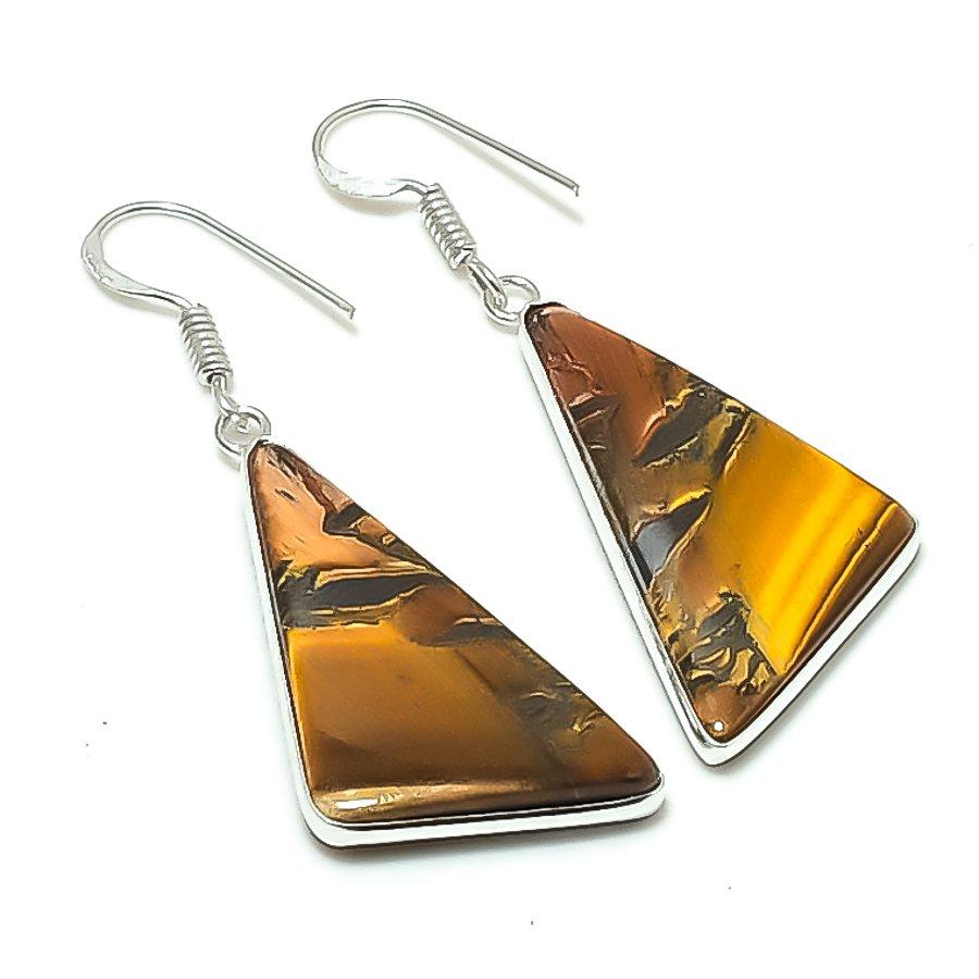 Natural Tiger Eye Gemstone 925 Sterling Silver Jewelry Earring 2.05" AEE-11184