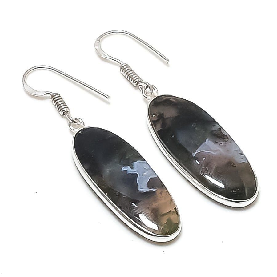 Natural Indian Moss Agate 925 Sterling Silver Jewelry Earring 1.97" AEE-10726