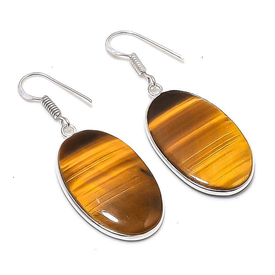 Natural Tiger Eye Gemstone 925 Sterling Silver Jewelry Earring 1.97" AEE-10946