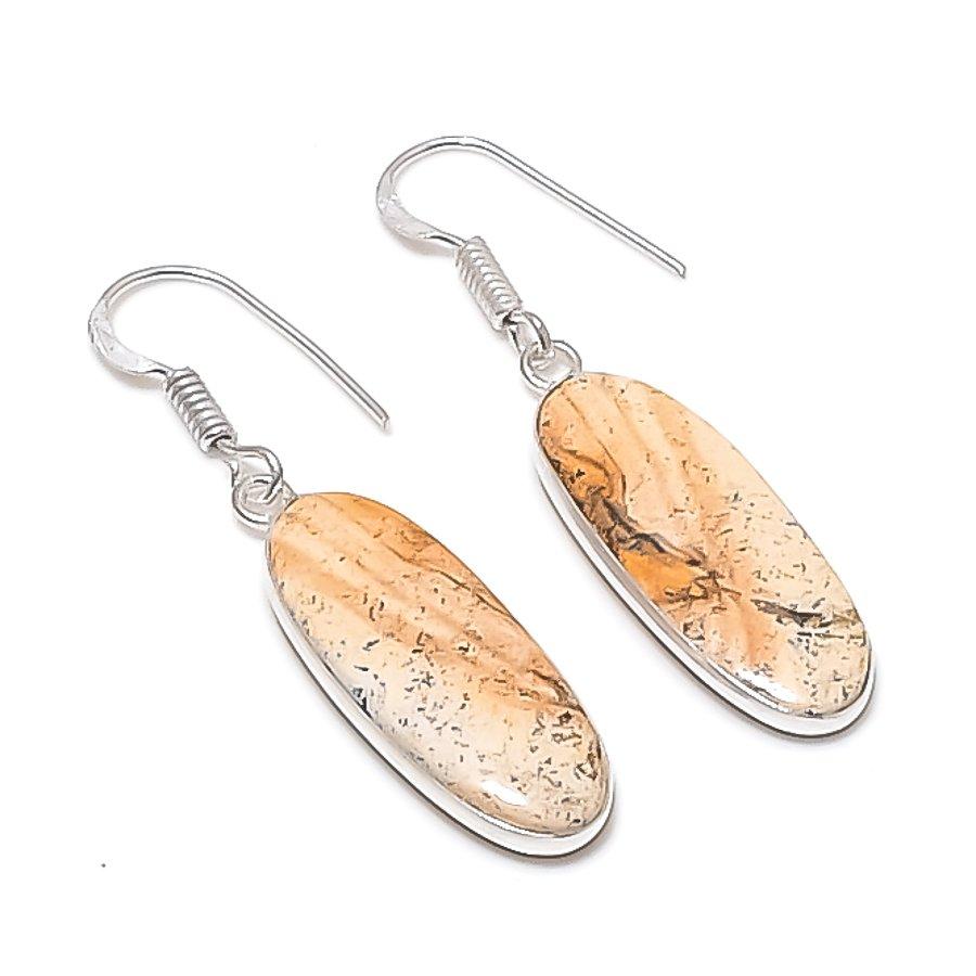 Natural Picture Jasper Gemstone 925 Sterling Silver Jewelry Earring 1.77" AEE-10802
