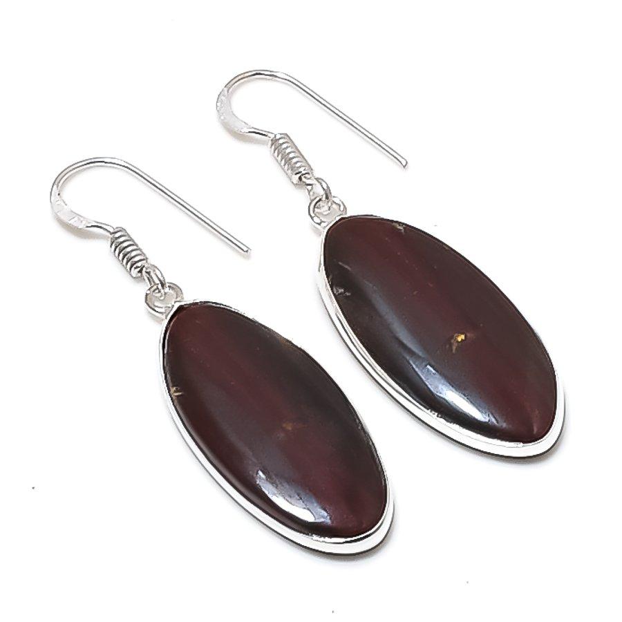 Natural Iron Tiger Eye Gemstone 925 Sterling Silver Jewelry Earring 1.81" AEE-11014