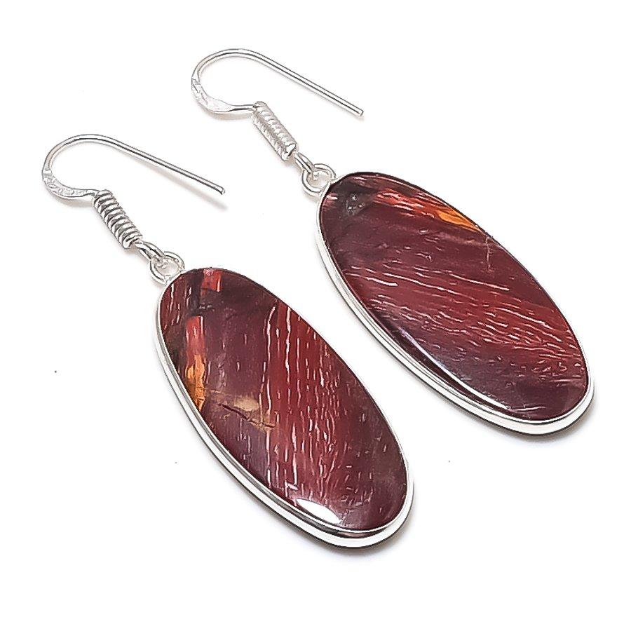 Natural Red Snakeskin Gemstone 925 Sterling Silver Jewelry Earring 2.09" AEE-10974