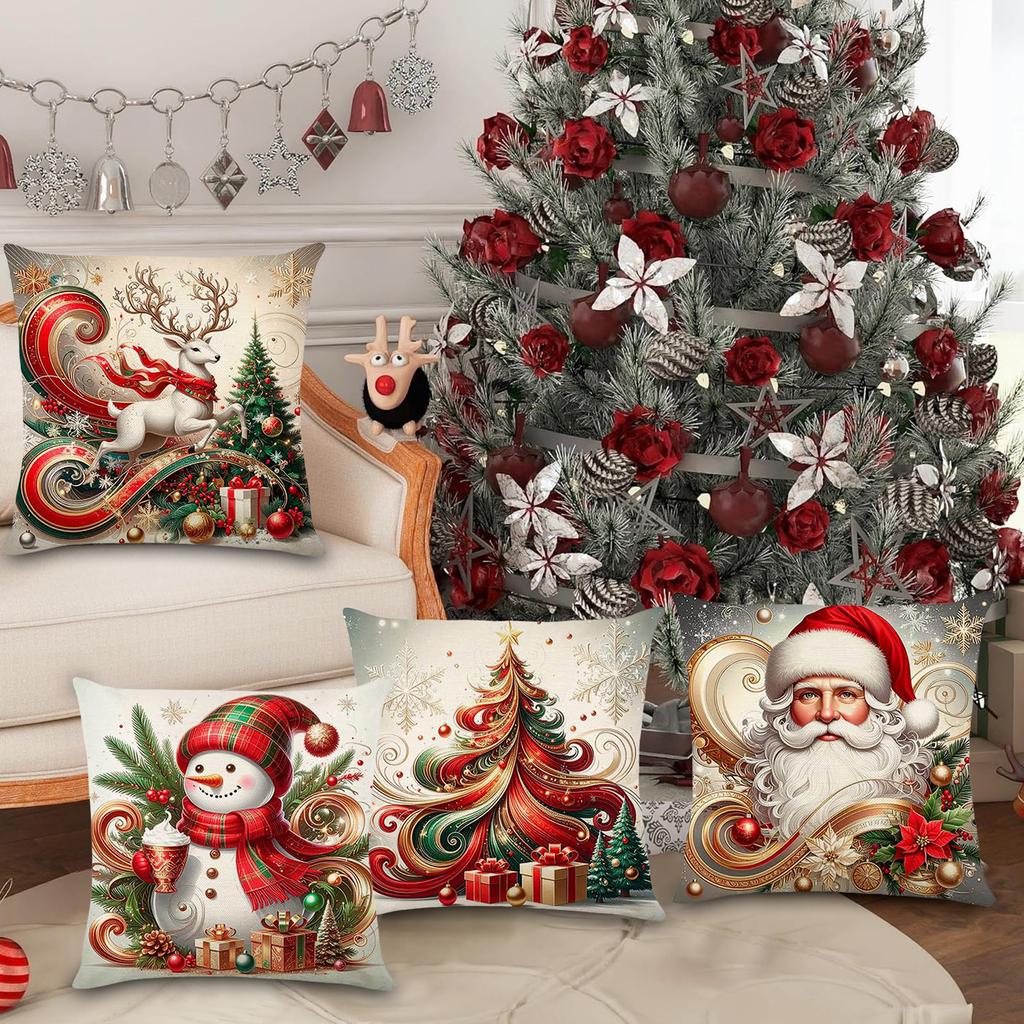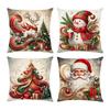 4Pcs Christmas Themed Pillow Case Washable Soft Cushion Sleeve Reindeer Pattern Snowman Printed Cushion Cover for Outdoor Couch