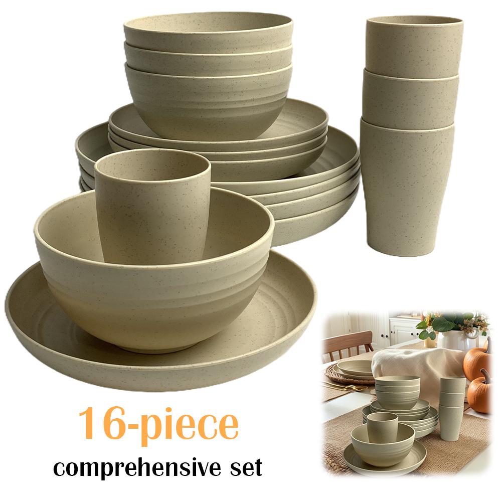 16Pcs Portable Cutlery Set Multi-Purpose Unbreakable Dinnerware Set Wheat Straw Dinnerware Suit Outdoor Tableware Set for People