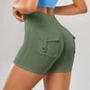 Women Cargo Pockets High Waist Yoga Shorts High Stretch Buttocks Quick Dry Sports Running Gym Pants