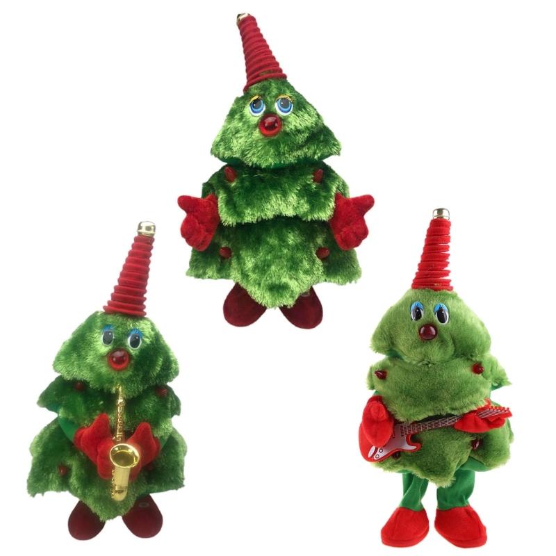 Electric Xmas Tree Music Figurine Toy: The lovely Xmas Tree music figurine toy featured with LED light, the lovely toy can wiggling body when powered, support music playing, which can be use as Christmas home ornament, table decoration, window display, the lovely Christmas tree plush toy will bring more happiness surroundings.