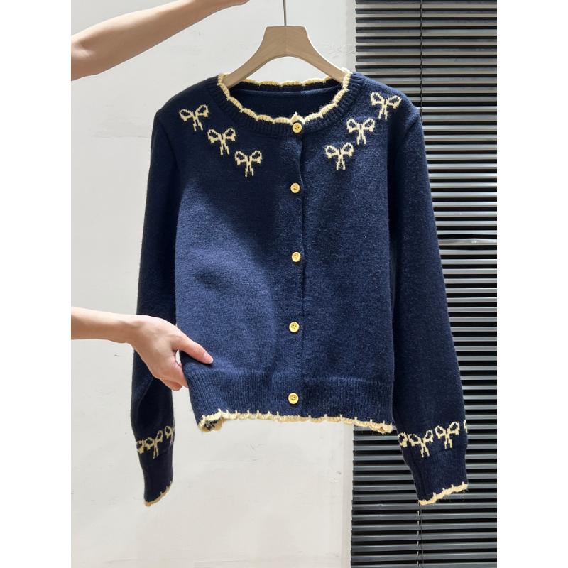 Bow Knit Cardigan Thickened Sweater Outerwear Women Autumn Winter New Style Loose Slouchy Sweet Top