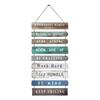 Enhance your living space with this wooden wall sign, a perfect blend of rustic charm and inspirational art. Crafted from high-quality wood, this decorative piece features nine wooden signs in various colors and patterns, connected by durable jute rope for lightweight strength.