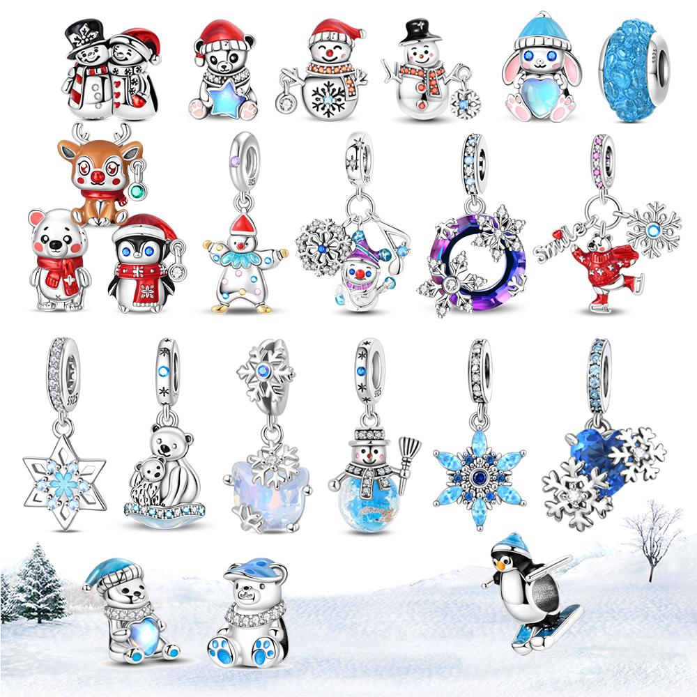 Winter Style Copper Snowflake Snowman Skiing Pendant Beads Fit Diy Bracelet Necklace Premium Seasonal Gifts