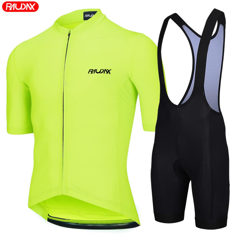 Raudax 2026 Men's Short Sleeve Cycling Jersey Set Fluorescent Yellow Summer Triathlon Bike Uniform Ropa Ciclismo Hombre