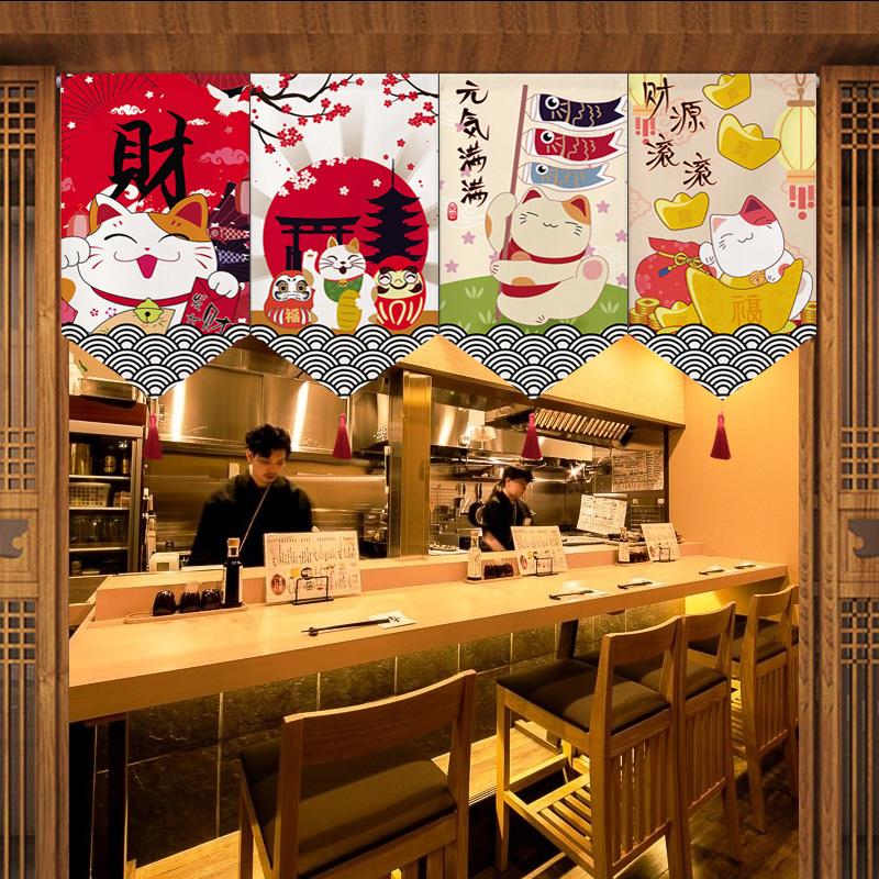 Japanese Short Curtain Doorway Noren Sushi Shop Triangle Flag Kitchen Home Decor Drapes Ramen Restaurant Hanging Half-Curtain