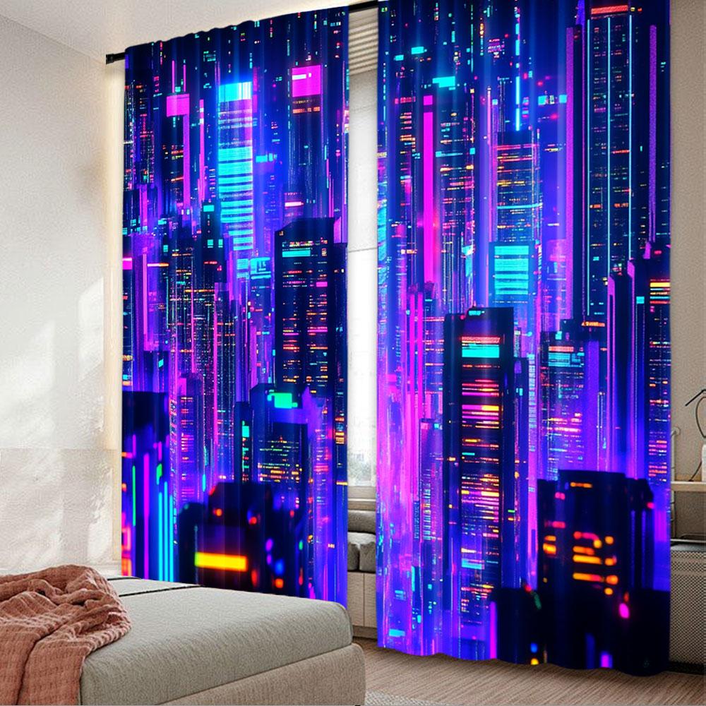 2Pcs Retro 80S Modern Punk Night City Curtain Futuristic Aesthetic Apply To Bedroom Living Room Office Dormitory A