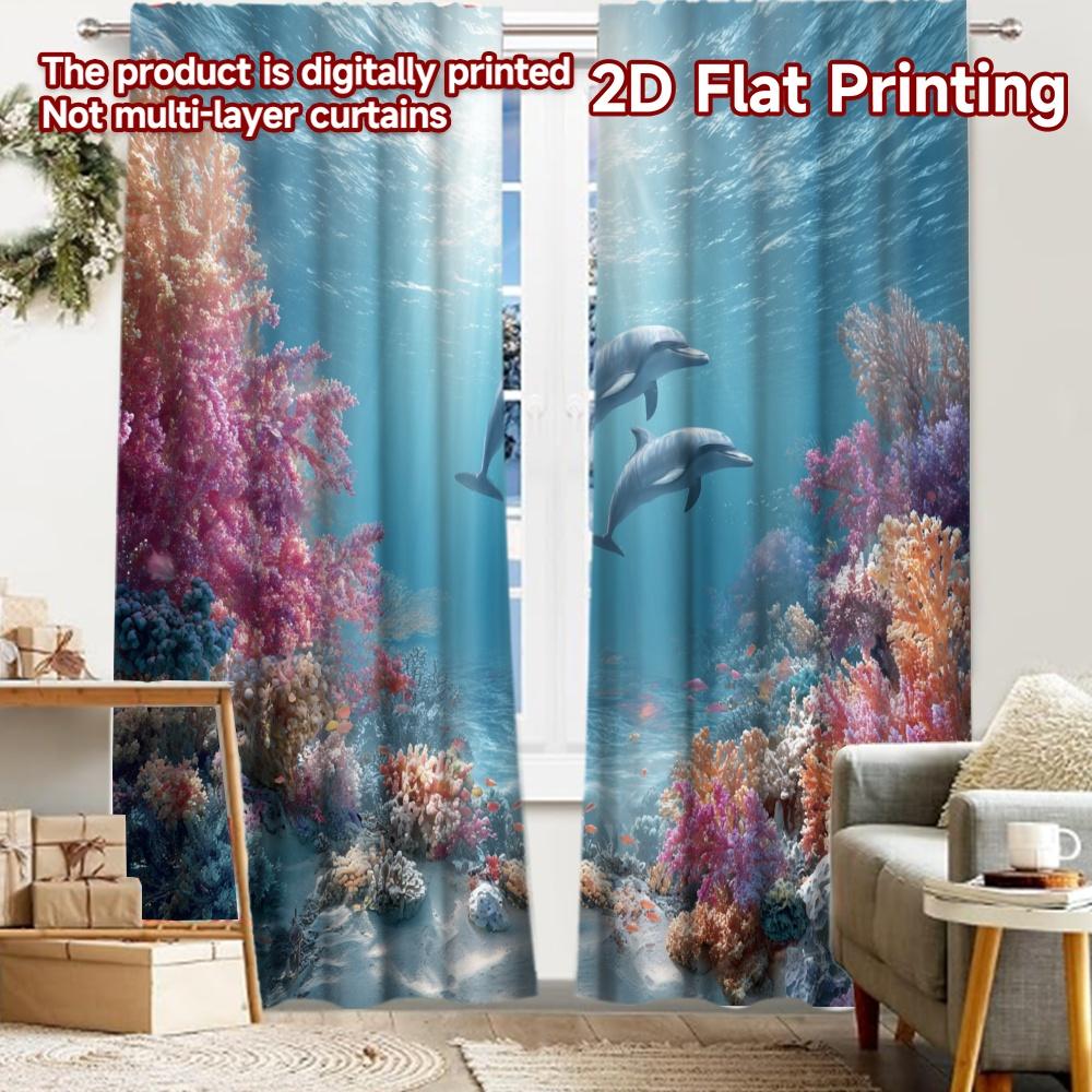 2pcs 2D FLAT PRINTING Curtains (Without Rod) Ocean Harmony(2) Christmas holiday curtains with digital printing Versatile