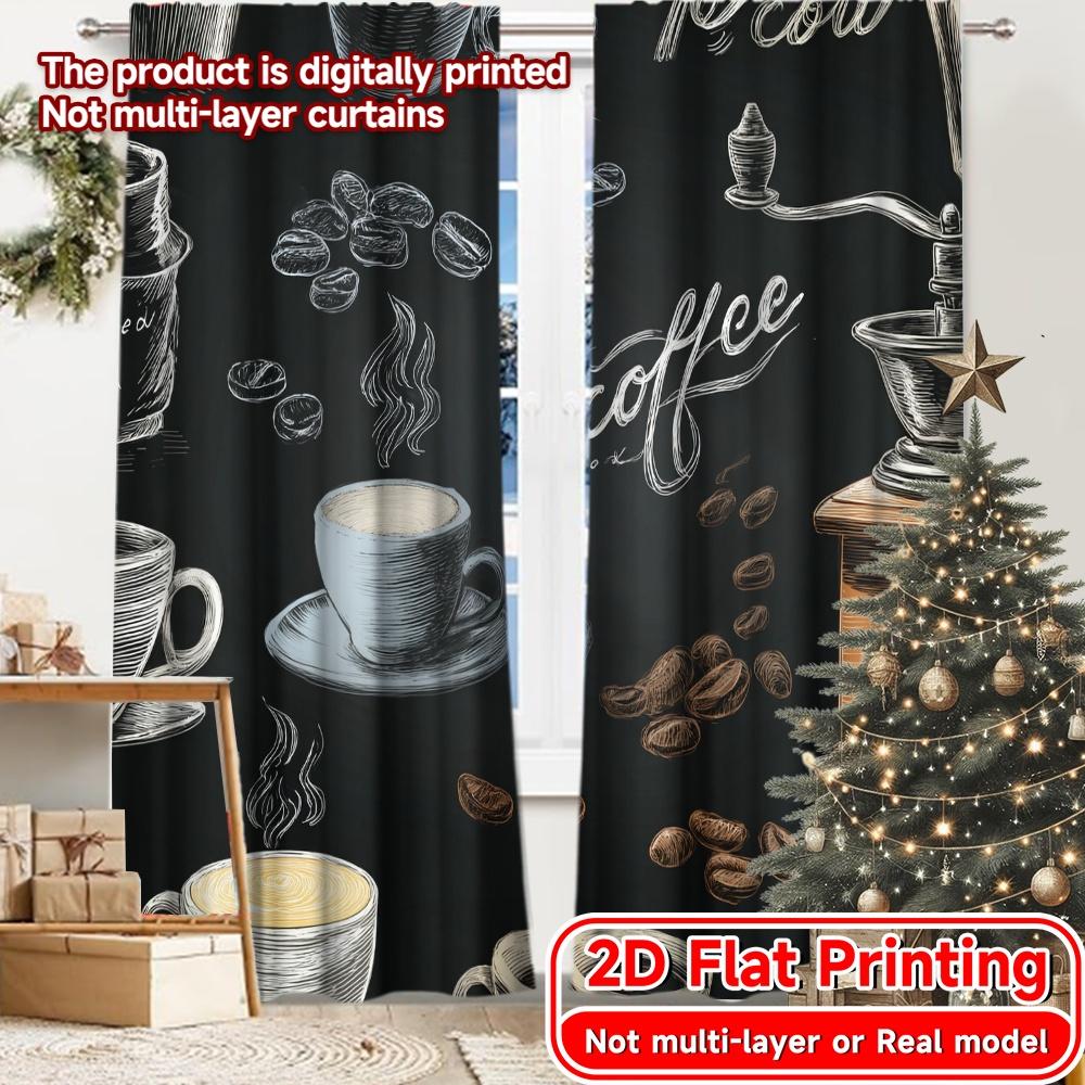 2D FLAT PRINTING 2pcs Curtains (Without Rod) Coffee Lovers Delight Ramadan Festival Popular Curtains&Drapes Polyester Easy