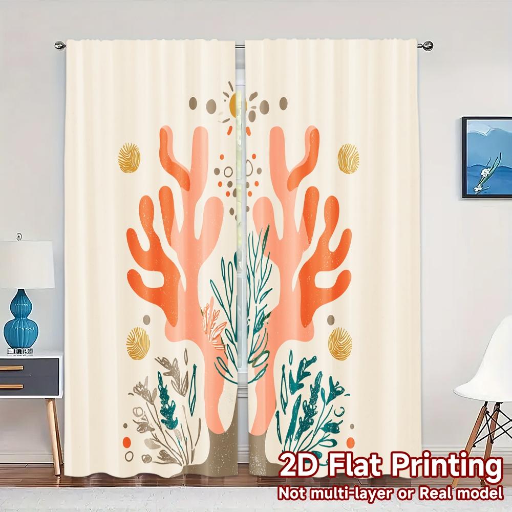 2D Flat Printing JIT 2pcs Curtains (Without Rod) Coral Elegance Popular Curtains&Drapes Durable 100% Polyester Fabric Curtains