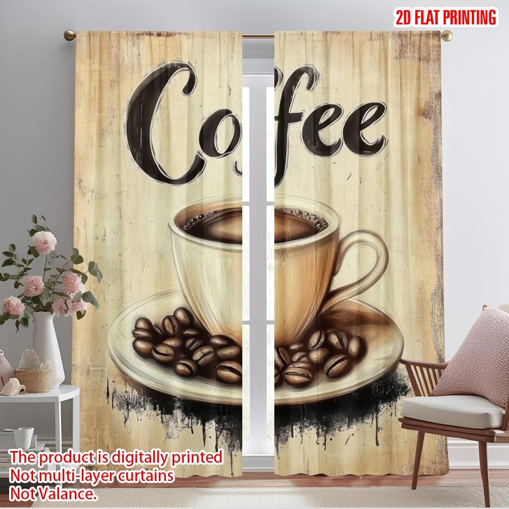 2pcs 2D plane printing Curtains&Window Treatment Morning Brew(1) Polyester Easy Install (without rod) Versatile All Use for