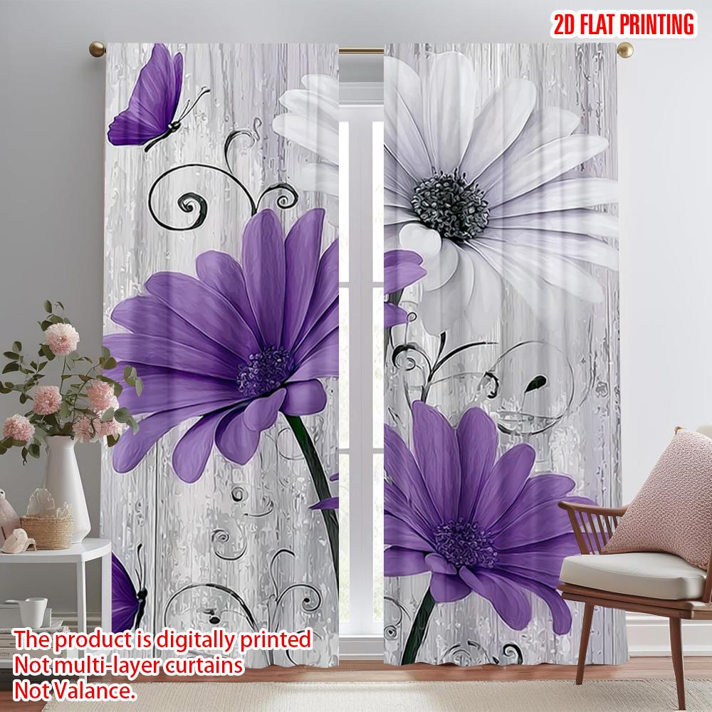 2pcs 2D plane printing Curtains&Window Treatment Purple Flower Butterfly 100% Polyester (without rod) All Seasons Use for Home &