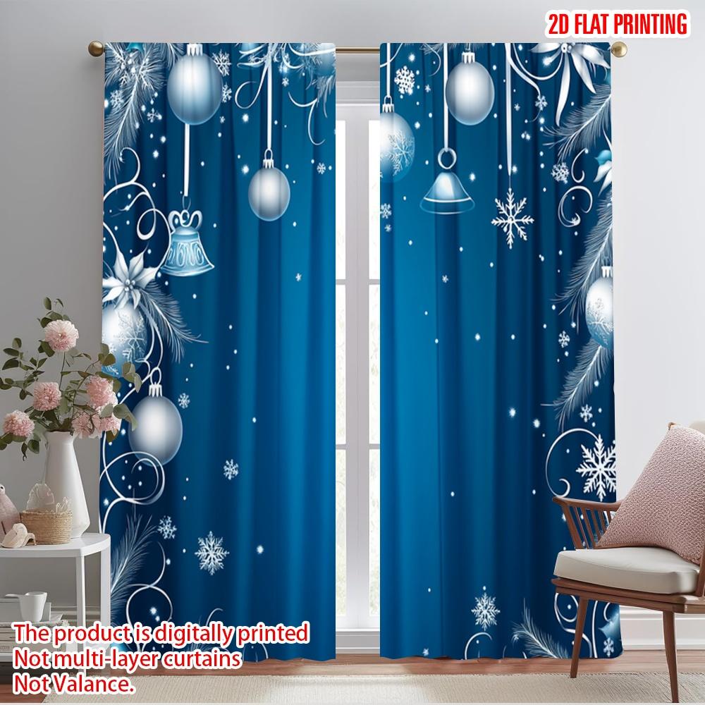 2pcs 2D plane printing Print Curtains Blue Christmas Ornaments Snowflakes Versatile Polyester (without rod) Outdoor Decorations