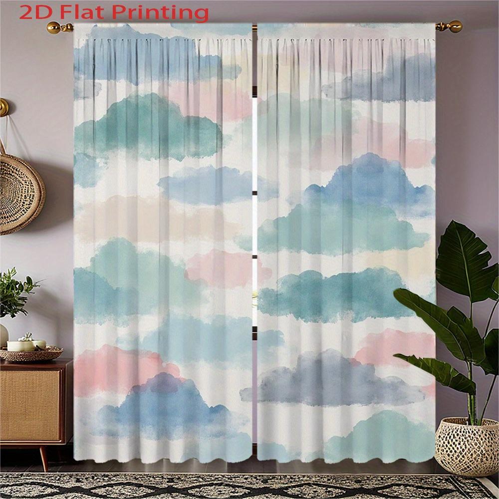 2D Flat 2pcs 2D Flat Printing Curtains Watercolor Clouds Pattern for Bedroom Light Blue Pink Grey Rod Pocket Velvet Fabric W