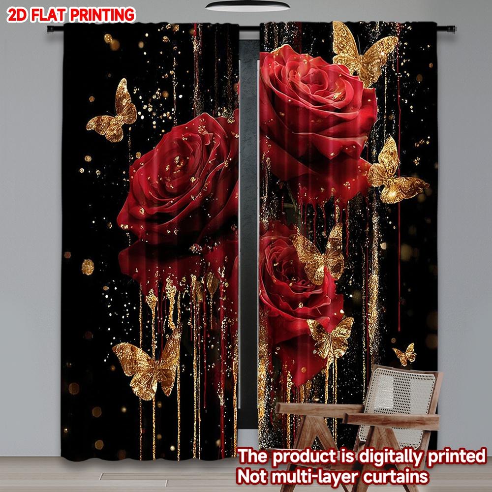 2D flat printing 2pcs Happy Valentine's Day Drapes Butterfly with rose Digital Printed Polyester Drapes Holiday Decorations for