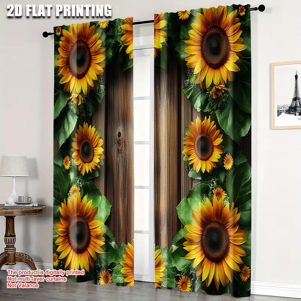 2pcs Fashionable Curtains 2D print Rustic Wooden Barn and Sunflower 100% Polyester (without rod) All Seasons Ldeal for Bedroom