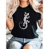 European Size Women's Casual Sporty T-Shirt, Round Neck, Short Sleeve, Lizard Print, Comfortable Summer Top, Knitted Fabric,