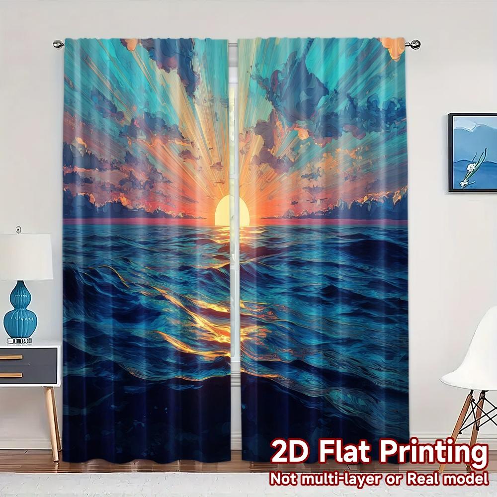 2pcs 2D FLAT PRINTING Curtains (Without Rod) Sunset Waves Pattern Popular Curtains Versatile Fabric Curtains Room Decor