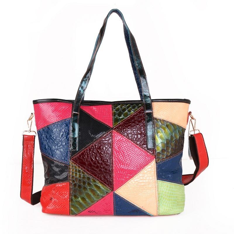Bag Women'S Sheepskin Tote Bag Handbag Splicing Color Messenger Bag Large Capacity