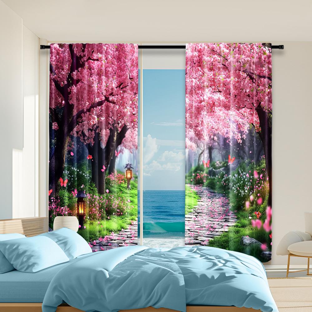 2 pcs versatile polyester transparent curtains for home decoration Enchanting Cherry Blossom for use in bedrooms and living
