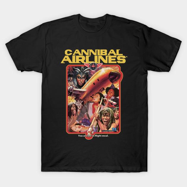 Men Black Print T-shirt Cannibal Airlines No-Cut Transfer Paper Print Cotton Tshirt