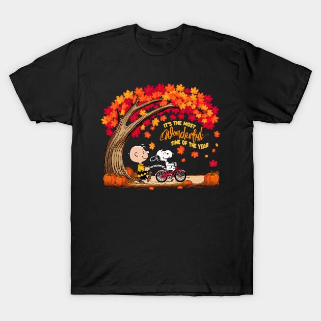 Men Black Print T-shirt Snoopy And Charlie Happy Fall Autumn No-Cut Transfer Paper Print Cotton Tshirt
