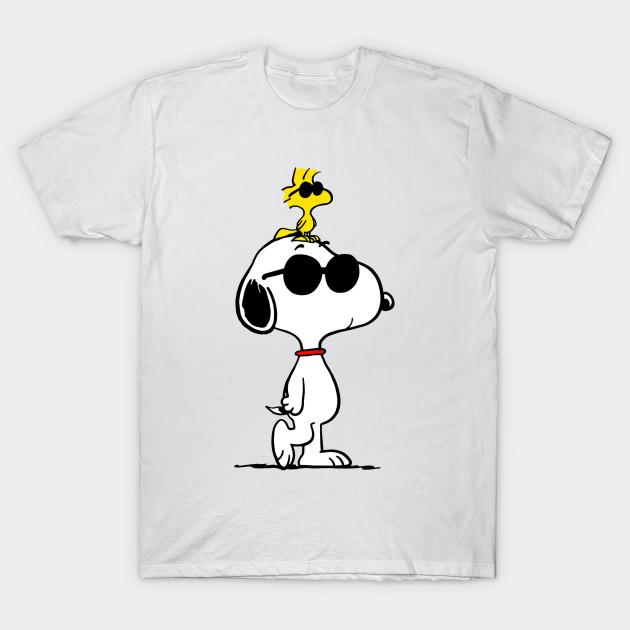 Men Black Print T-shirt Cool Snoopy With Woodstock No-Cut Transfer Paper Print Cotton Tshirt