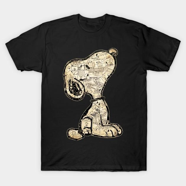 Men Black Print T-shirt Snoopy Vintage Comic Strip Collage No-Cut Transfer Paper Print Cotton Tshirt
