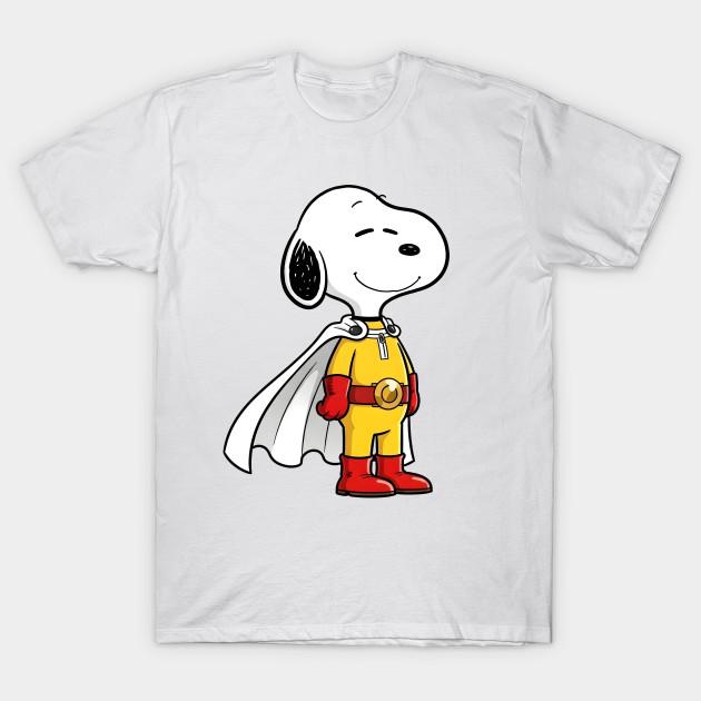 Men Black Print T-shirt Snoopy As Saitama No-Cut Transfer Paper Print Cotton Tshirt