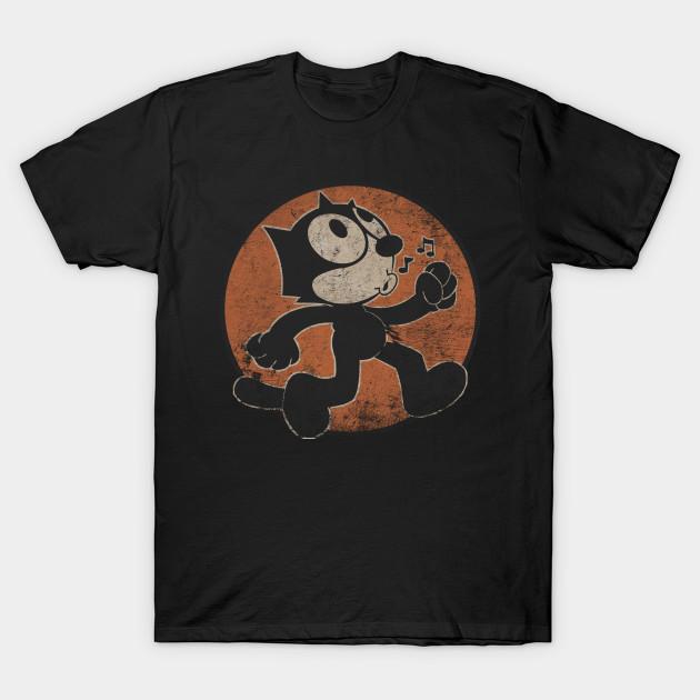 Men Black Print T-shirt Felix The Cat Vintage No-Cut Transfer Paper Print Cotton Tshirt