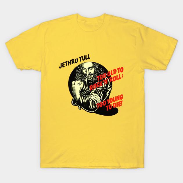 Men Black Print T-shirt Jethro Tull Too Old ... No-Cut Transfer Paper Print Cotton Tshirt