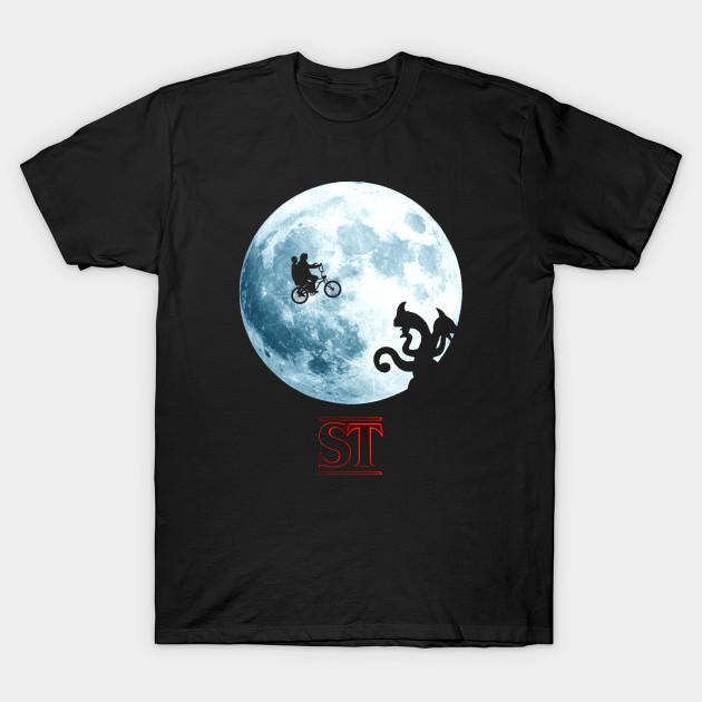 Men Black Print T-shirt S.T. Stranger Things No-Cut Transfer Paper Print Cotton Tshirt