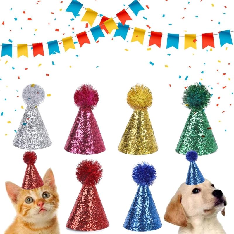J0MC 6pcs Glittering Powder Pet Party Hat With Adjustable Rope For Party PhotoShoots Cats Dog Festival Costume Accessory