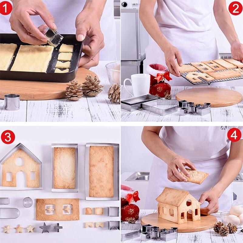 Stainless Steel Christmas Baking Accessories Gingerbreads House Biscuit Molds J0MC