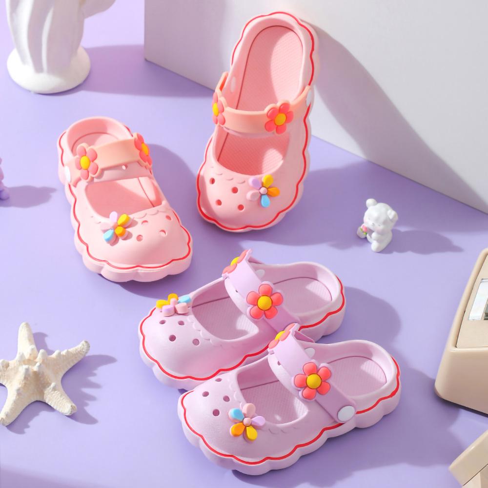 Summer 3-8year Kids Mules & Clogs Children Sandals Girls Garden Shoes Flowers Slippers Solid Soft Sole Beach Princess Sandalias